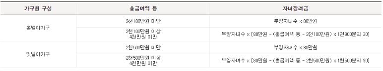 -. 홑벌이 가구 부양자녀 1명 당 최대 80만 원