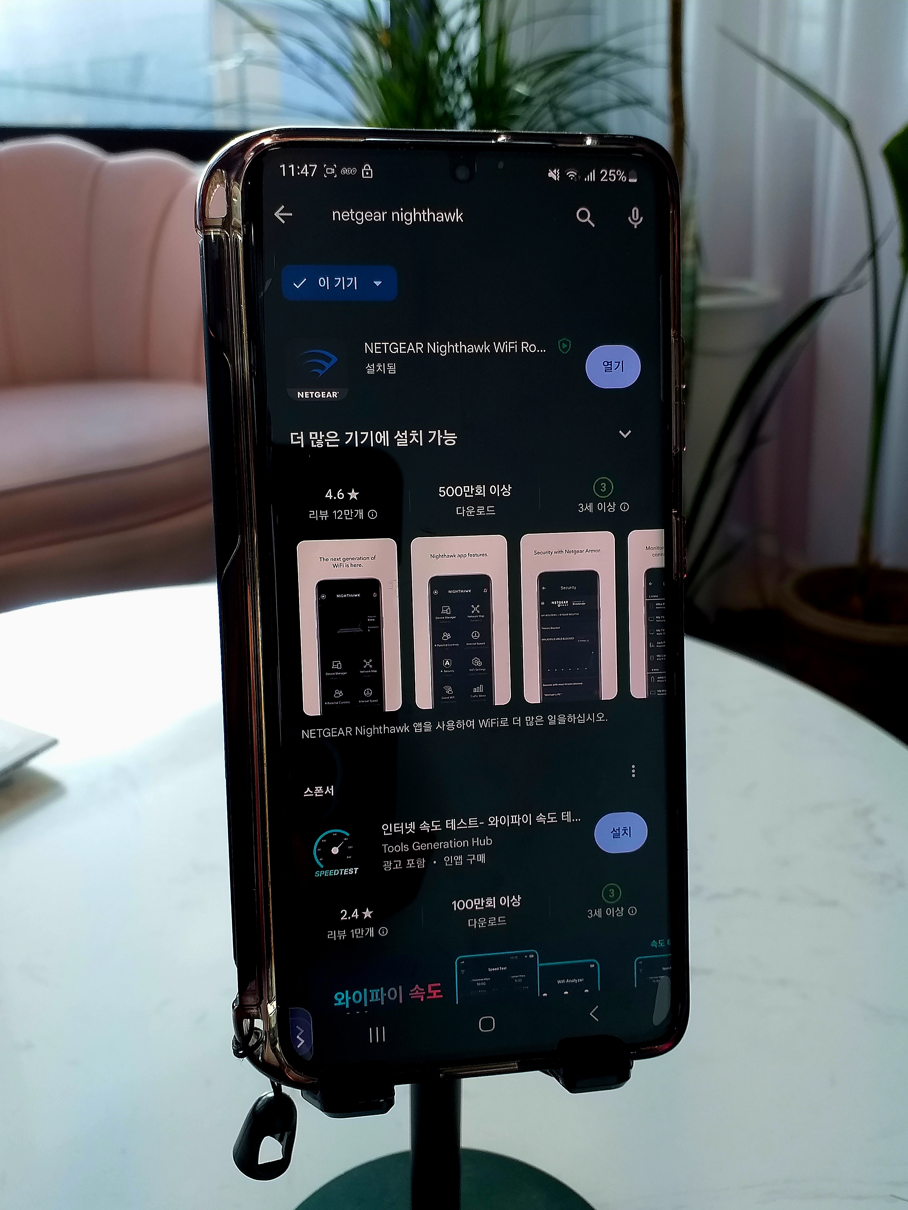 넷기어 RAX10 와이파이 공유기를 1층 컴퓨터룸에 설치하고 비교적 신호가 약했던 2층을 측정해 보았습니다.
