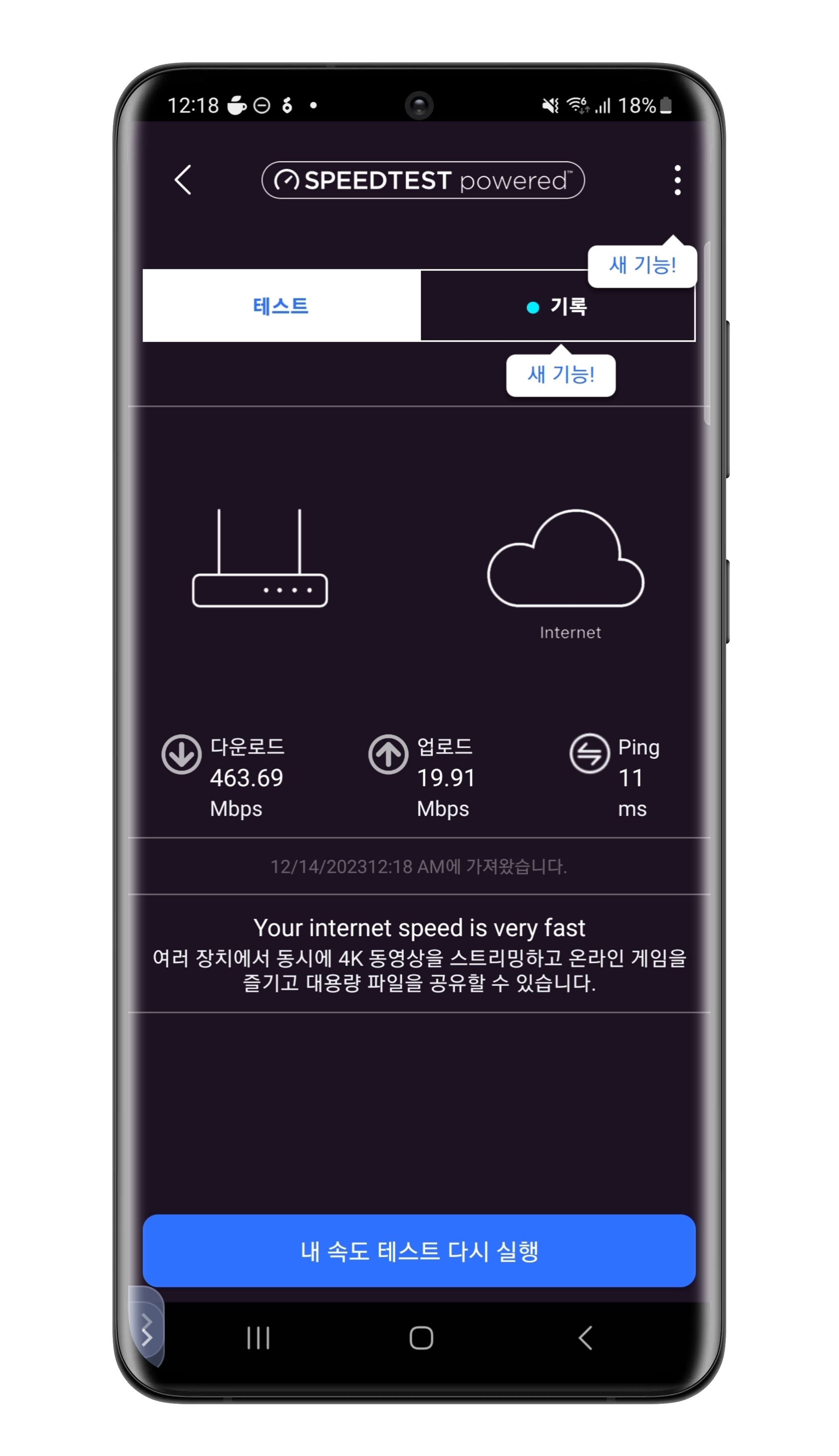"Your internet speed is very fast"로 빠른 인터넷을 확인할 수 있었습니다.