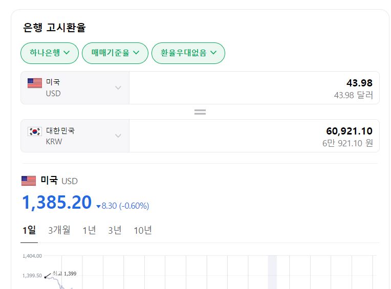 아래 금액은 12개월+3개월 가격을 토대로 환율 계산을 확인해보았습니다.