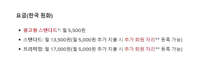 현재 넷플릭스 요금제는 크게 광고형 스탠다드, 스탠다드, 프리미엄이 있습니다. 광고형 스탠다드는 비교적 저렴하지만 광고를 시청해야하는 불편함이 있습니다.