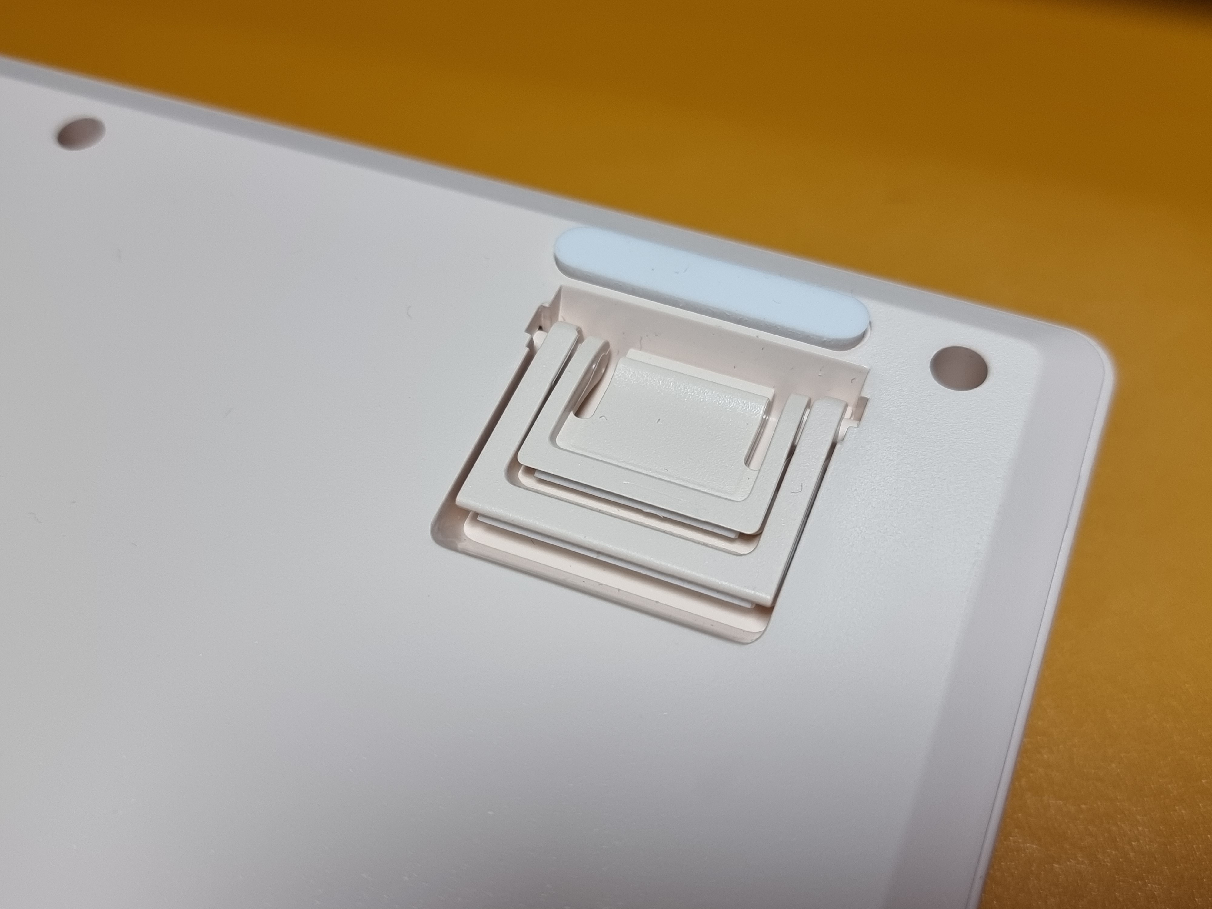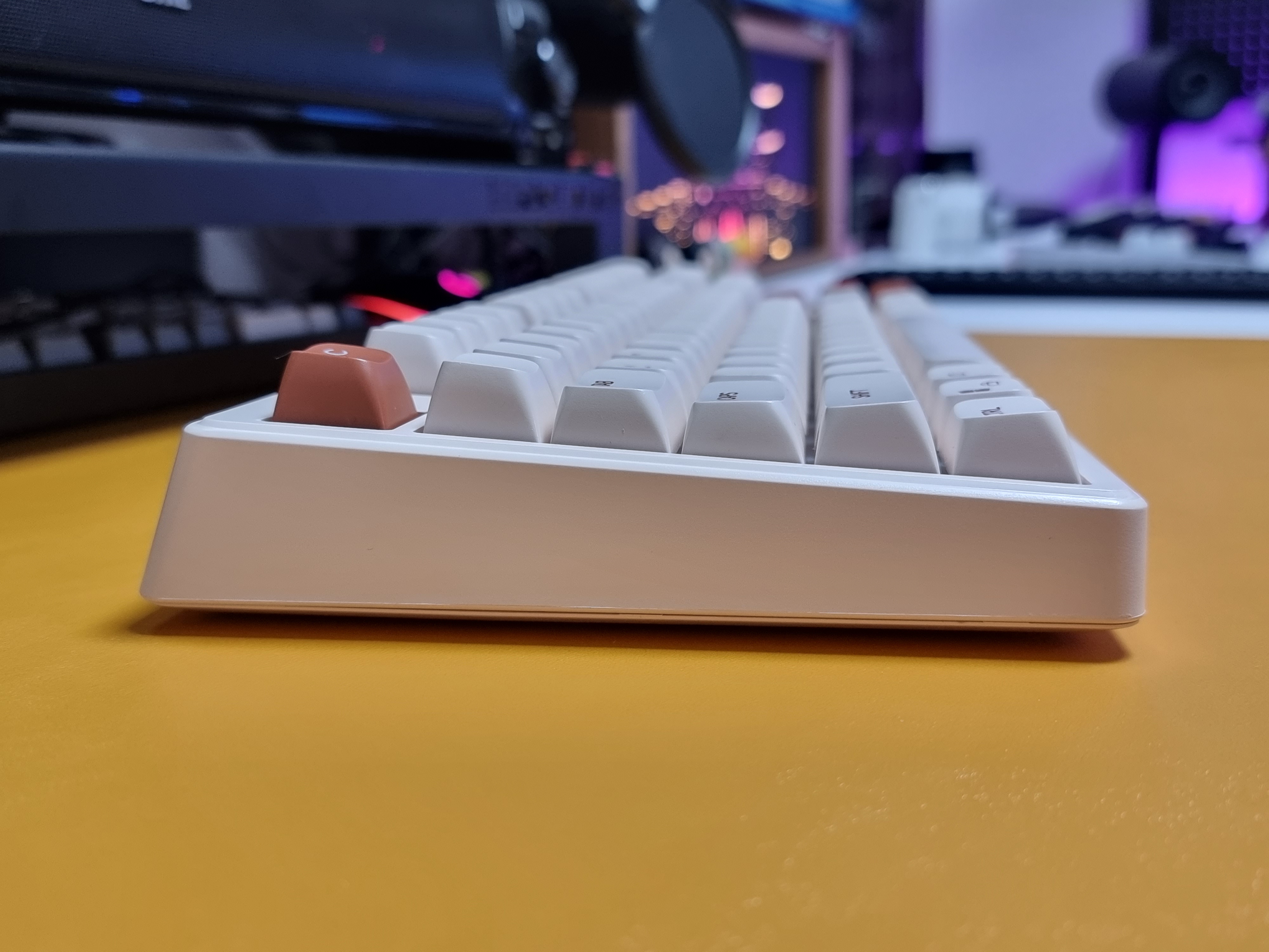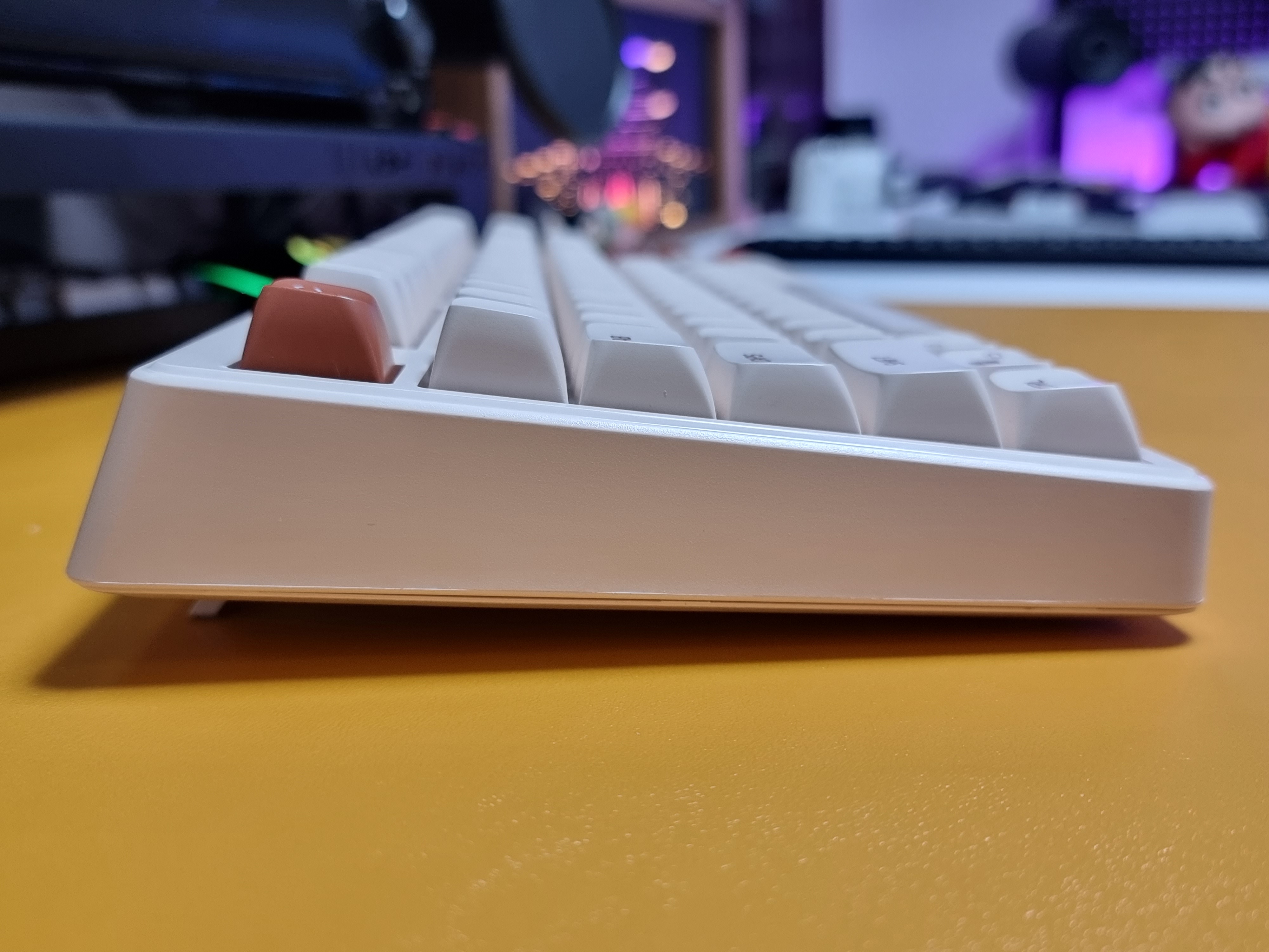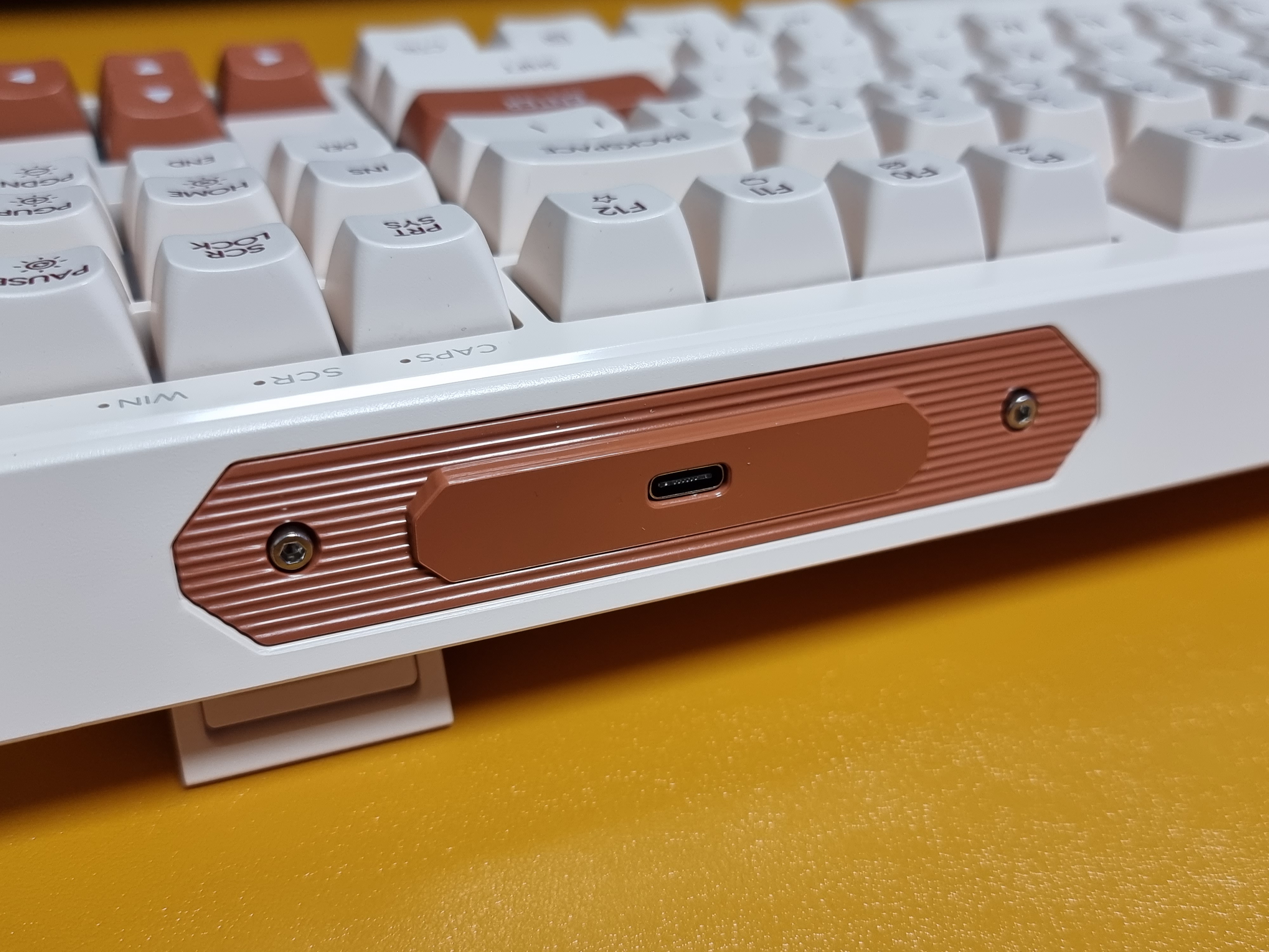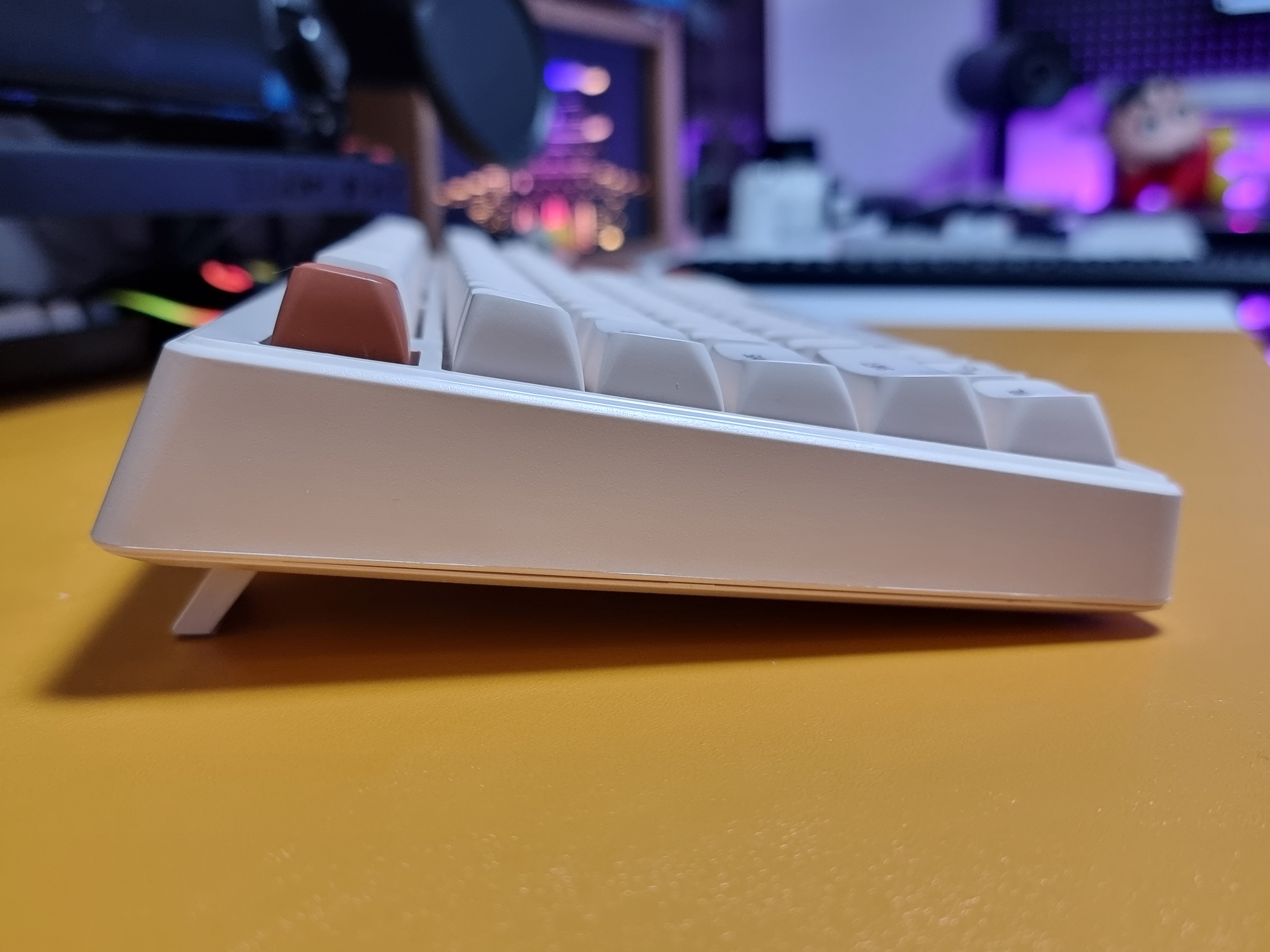 키보드에 전용 C 타입 케이블을 연결하면 LED 백라이트가 나타나며 은은한 흰색의 백라이트가 아이보리 색상과 아주 잘 어울립니다.