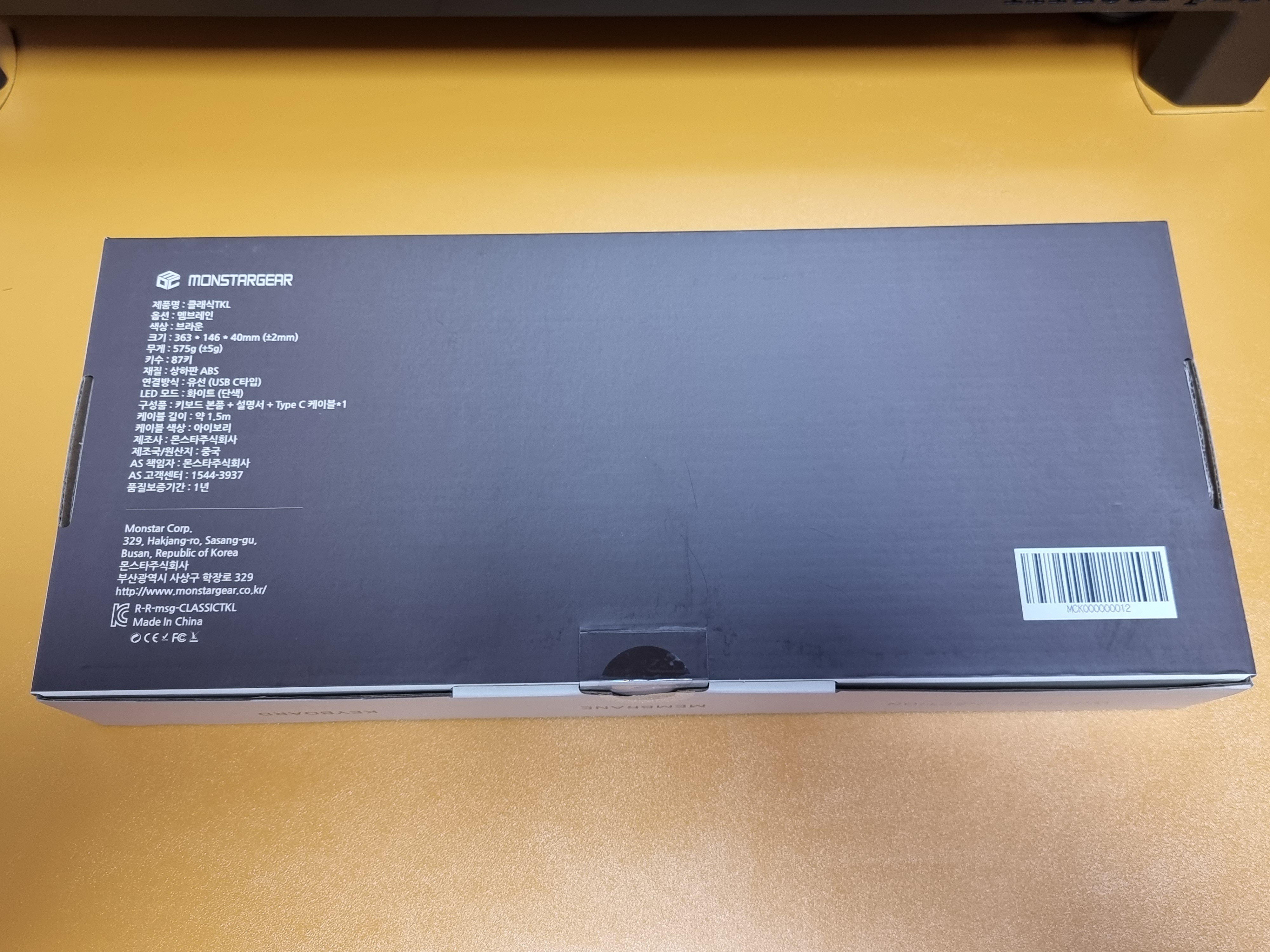 이번에 사용한 키보드는 몬스타기어 텐키리스 클래식 멤브레인 키보드입니다. 키보드의 레이아웃은 87키로 구성되어 있고 무게는 575g으로 가벼운 편입니다.