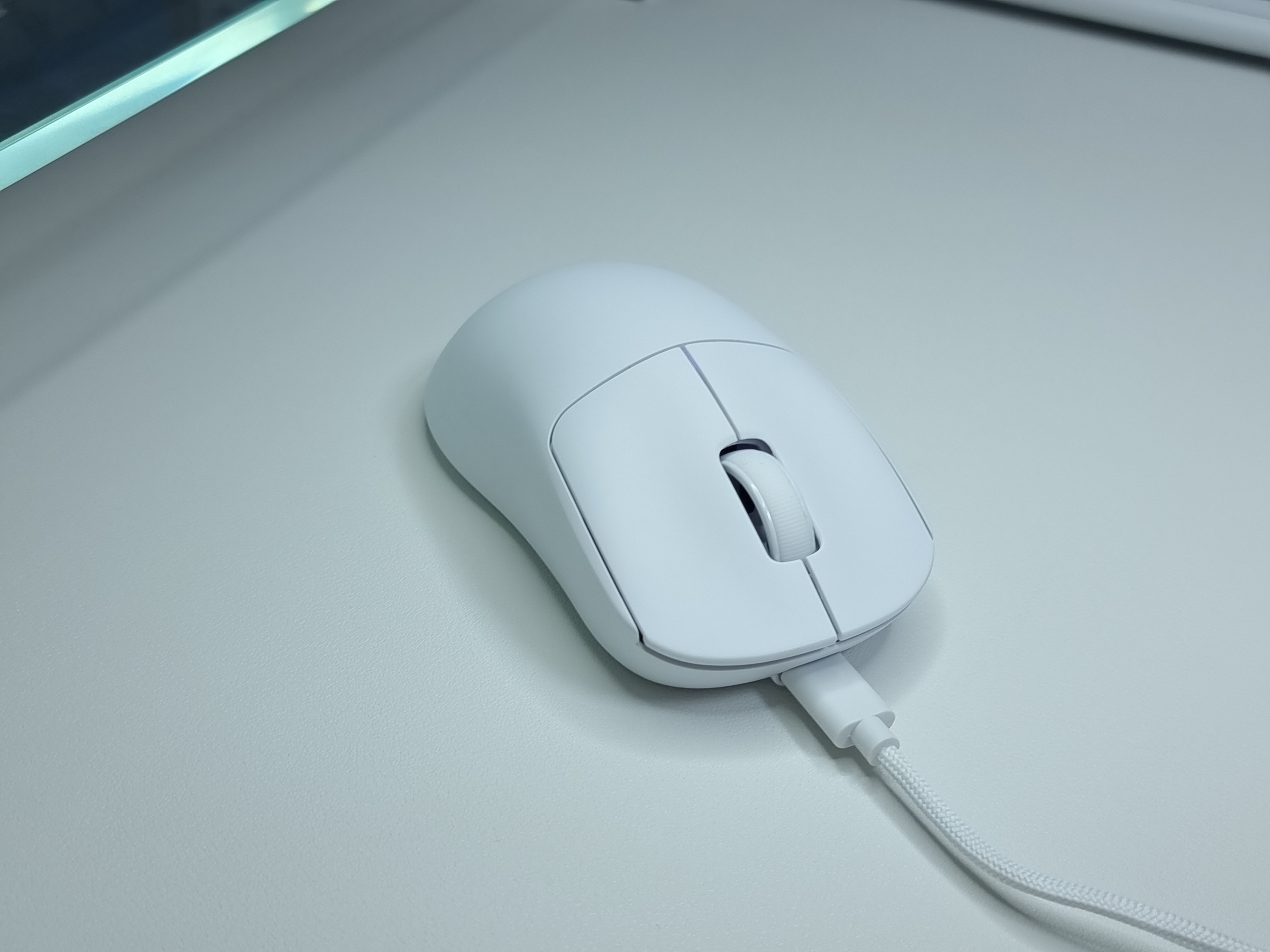 디자인은 원톤 화이트로 호불호가 거의 없는 깔끔한 디자인입니다. DPI버튼, LED 조명 등 모두 상단에 배치하지 않아 모던함을 느낄 수 있고, 하얀색 마우스 중에서도 가장 하얀색에 가깝습니다.