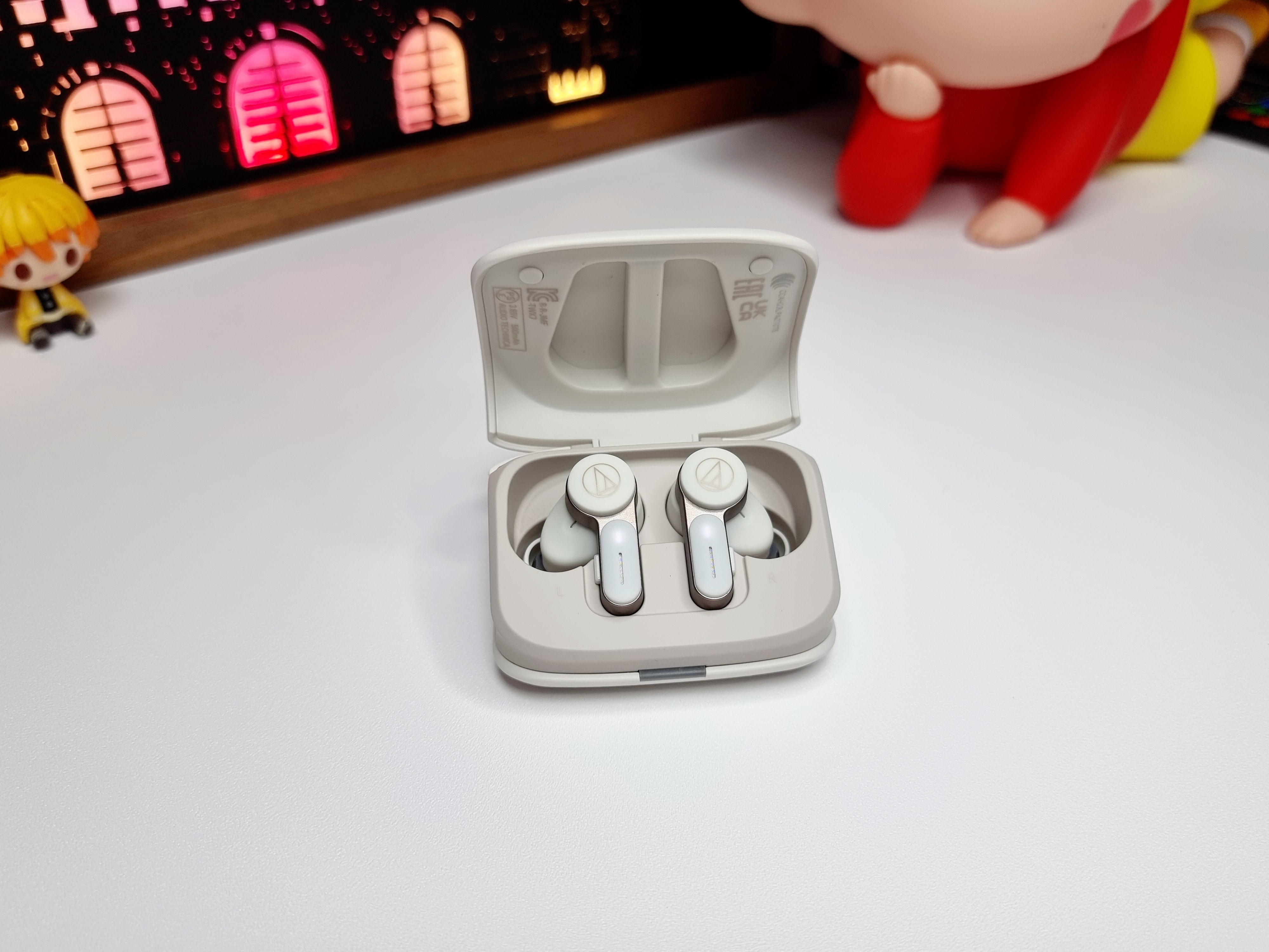 충전 크래들 부드러운 곡선형 디자인으로 깔끔하고 유니크한 디자인이였습니다. 커버에는 오디오테크니카 로고가 각인되어있고, 후면에는 C타입 충전 포트가 있어 손쉽게 충전이 가능합니다.