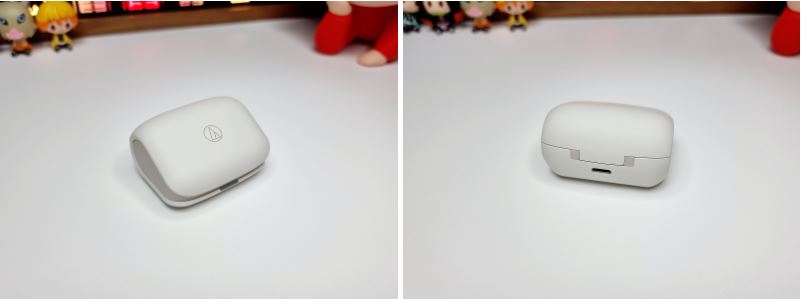 충전 크래들 부드러운 곡선형 디자인으로 깔끔하고 유니크한 디자인이였습니다. 커버에는 오디오테크니카 로고가 각인되어있고, 후면에는 C타입 충전 포트가 있어 손쉽게 충전이 가능합니다.
