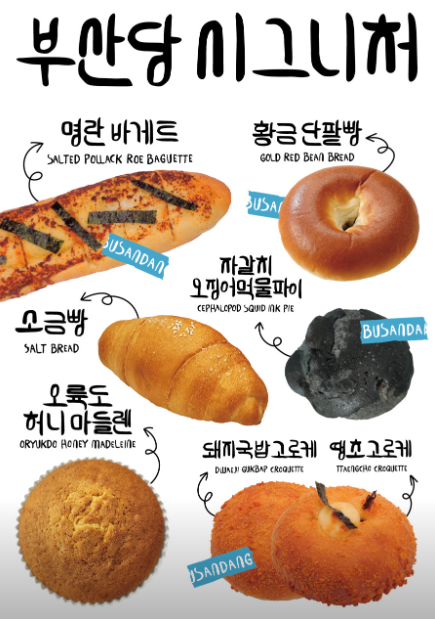 시그니처 외에도 부산당에는 수십 종의 매력적인 빵이 준비돼 있습니다. 로컬 특산물, 창의적인 필링, 독창적인 모양이 인상적인 메뉴들을 엄선했습니다.