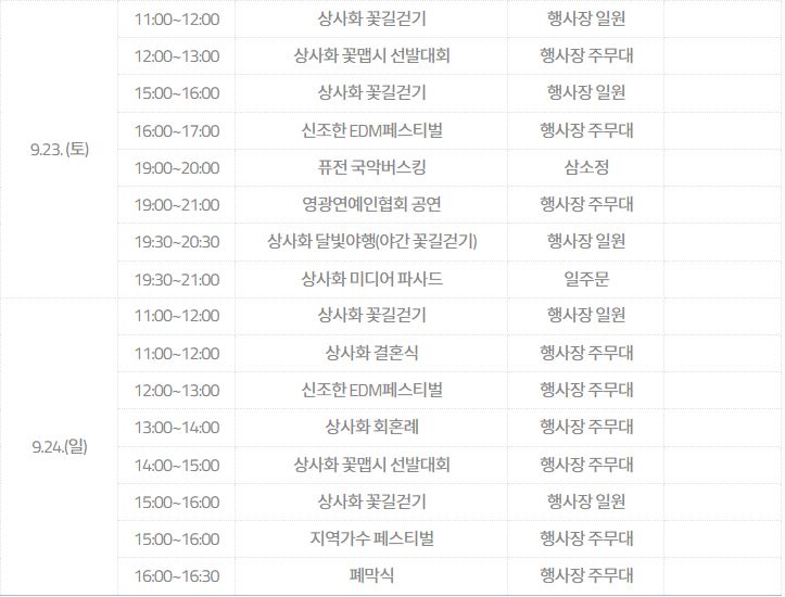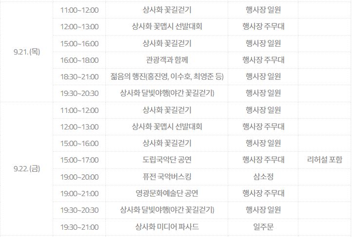4. 불갑산 상사화축제 행사일정
