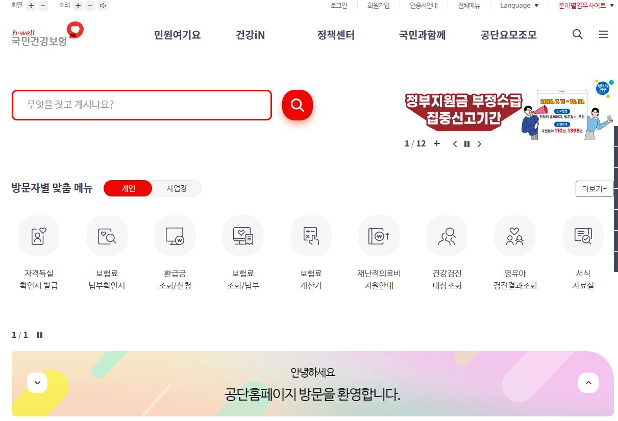-국민건강보험 사이트 접속 (아래 링크를 눌러 따라하시면 됩니다)