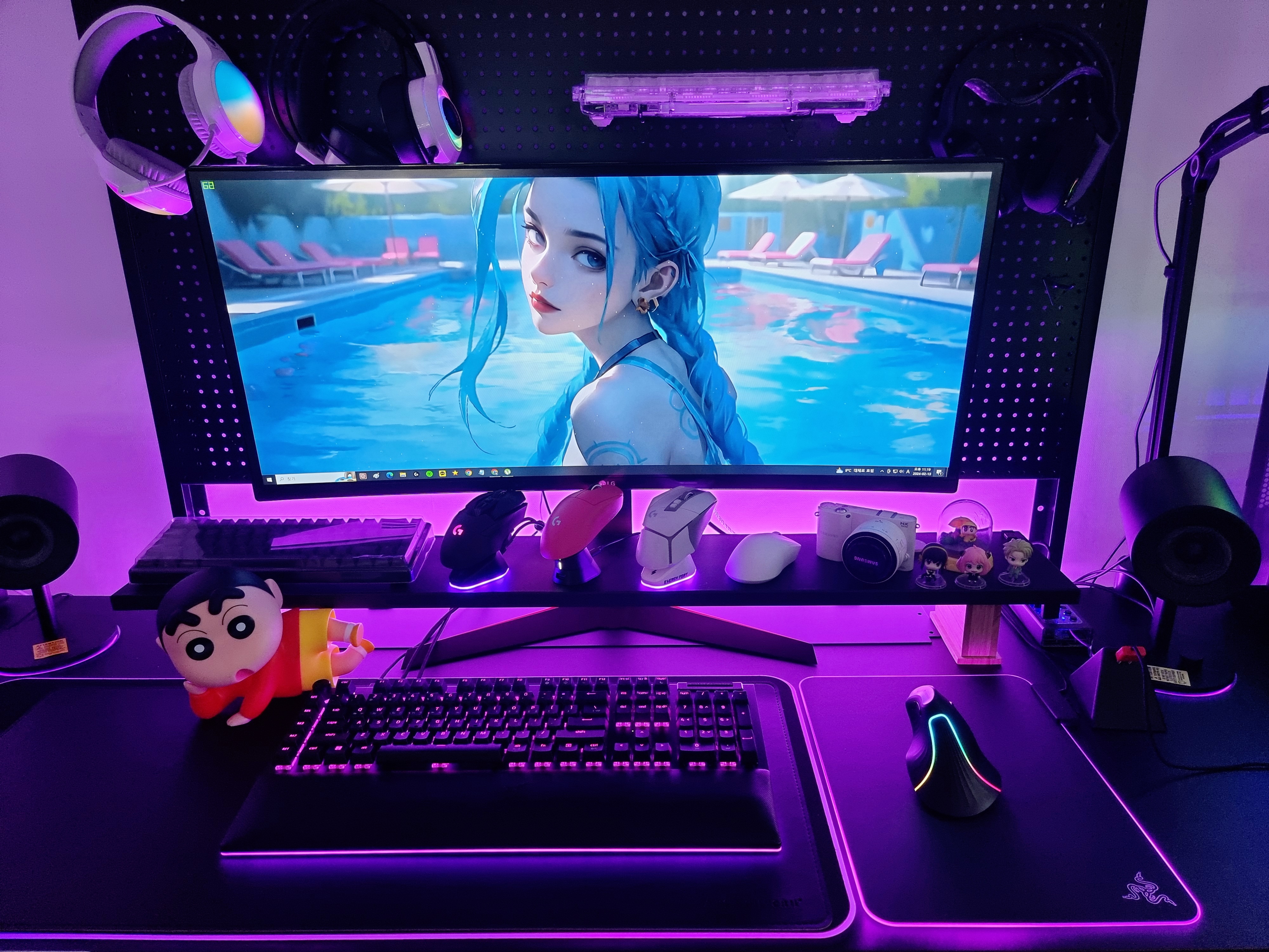 몬스타기어 크루 GVX의 전원을 켜보면 RGB 조명을 볼 수 있고 광량도 좋아 밝은 환경에서도 예쁜 RGB 감성을 느낄 수 있습니다.