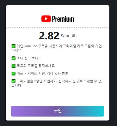 | 유튜브 프리미엄 가격 가족공유 우회 대안 할인 사용방법 총정리 (1) | 2025.07.22 |