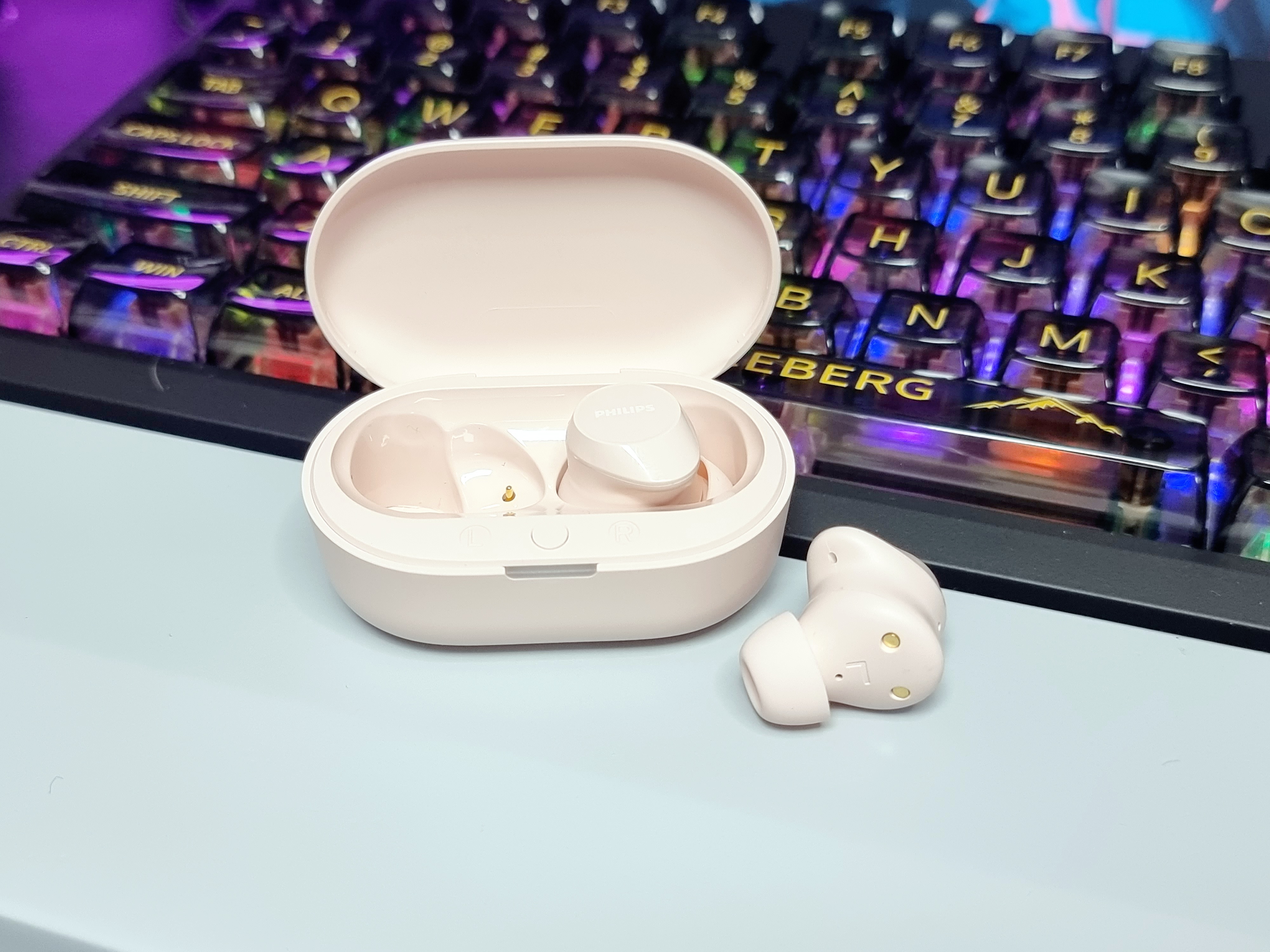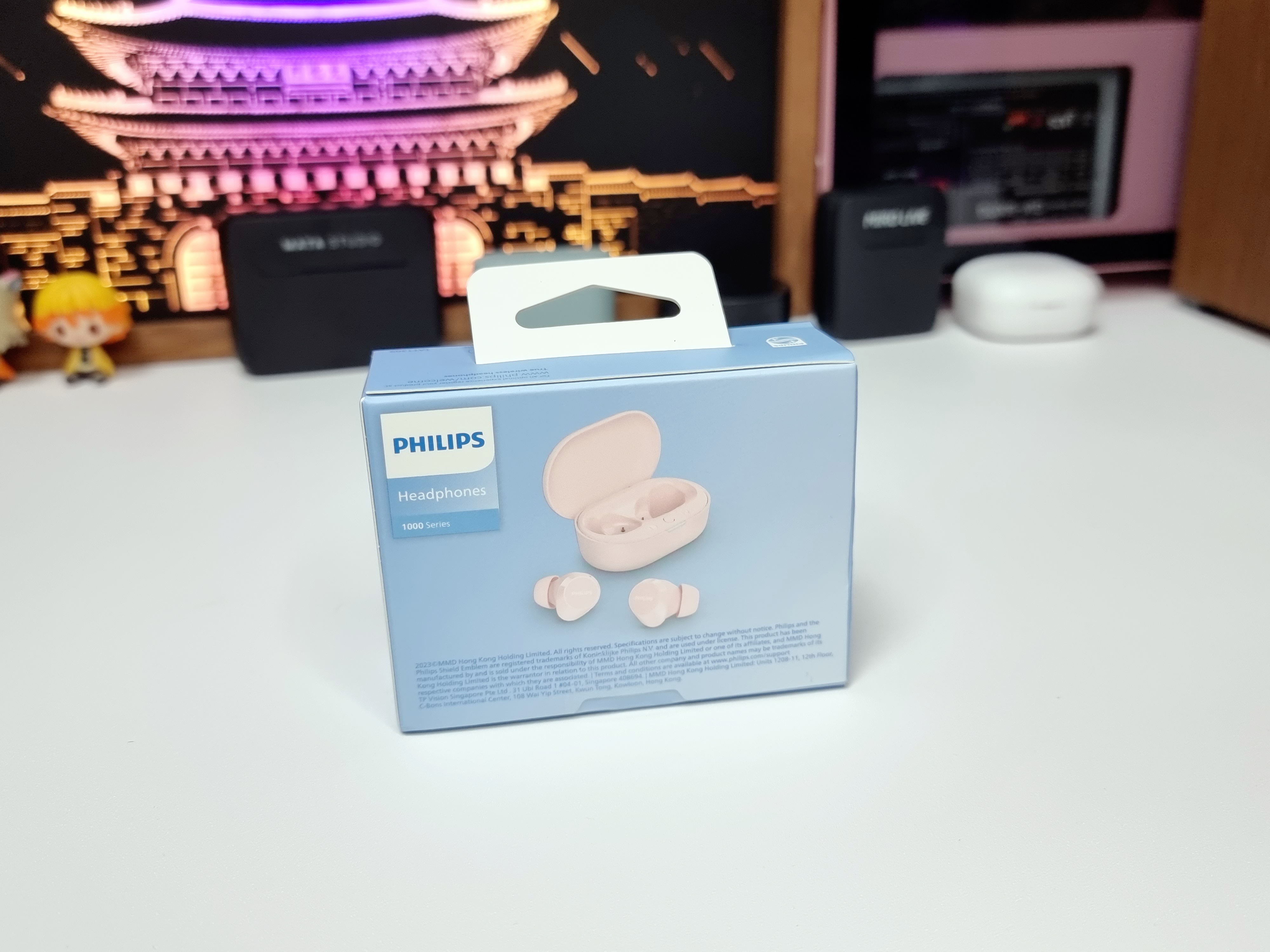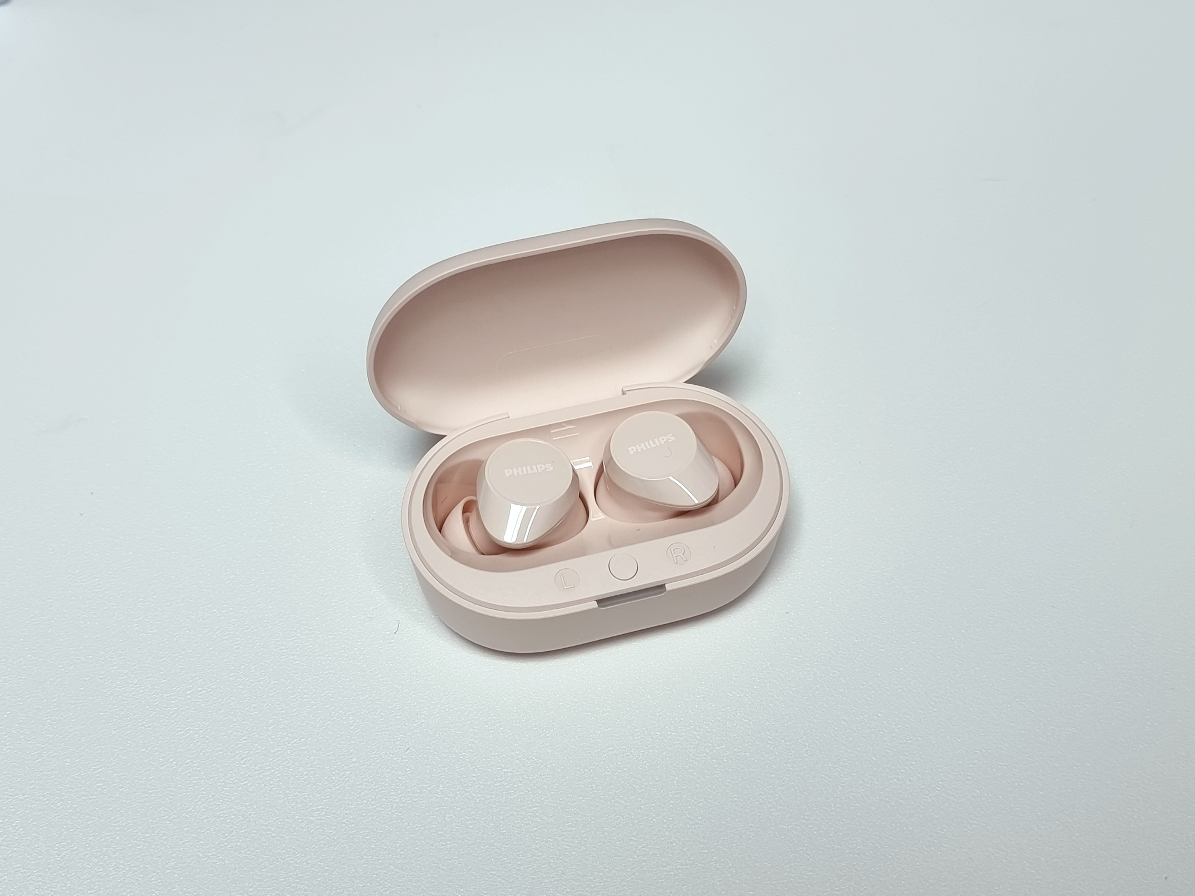 핑크색의 충전케이스가 처음 봤을때부터 아주 마음에 들었습니다. 뚜껑의 필립스 로고도 예쁜 폰트로 각인되어있네요.
