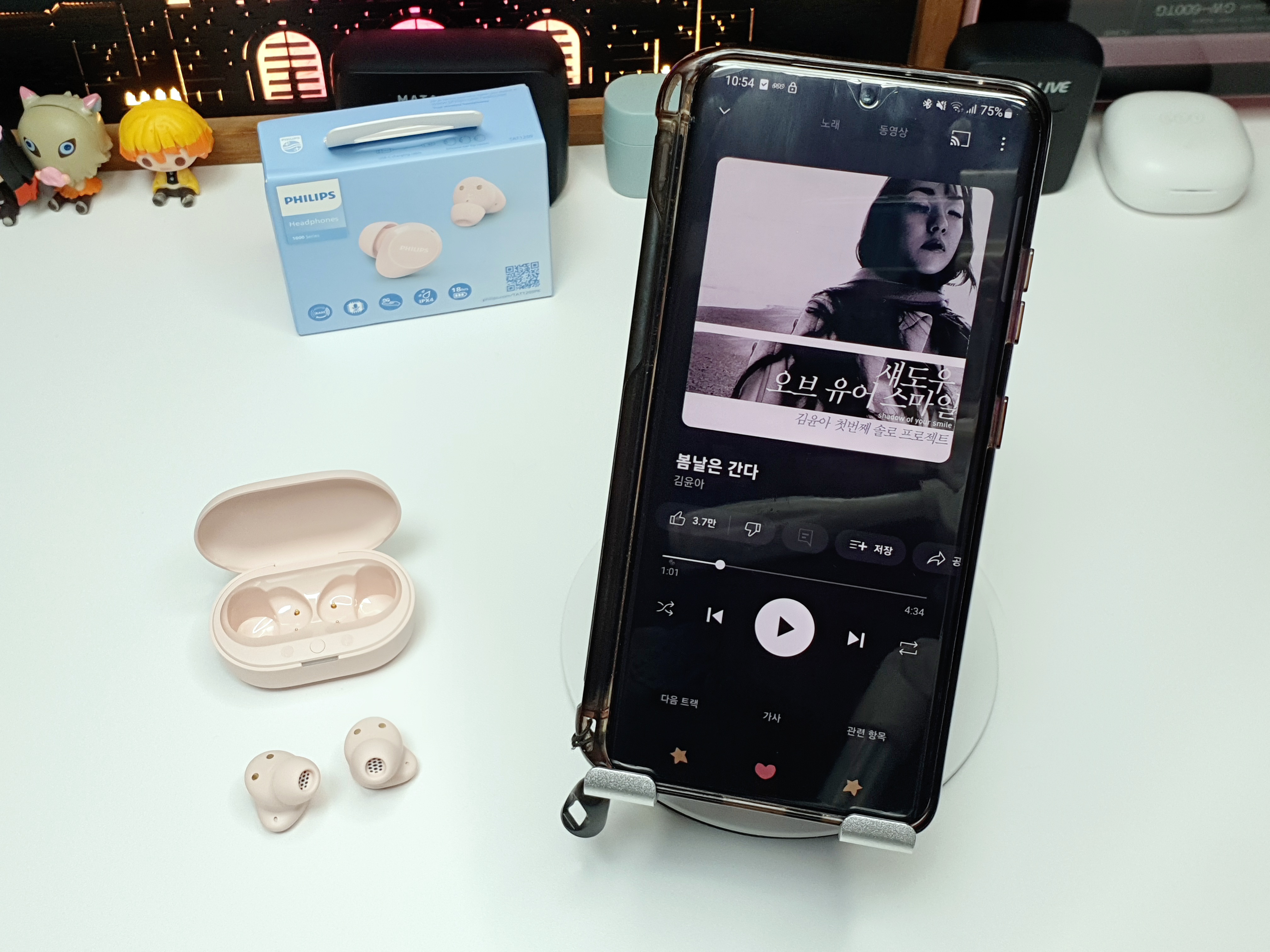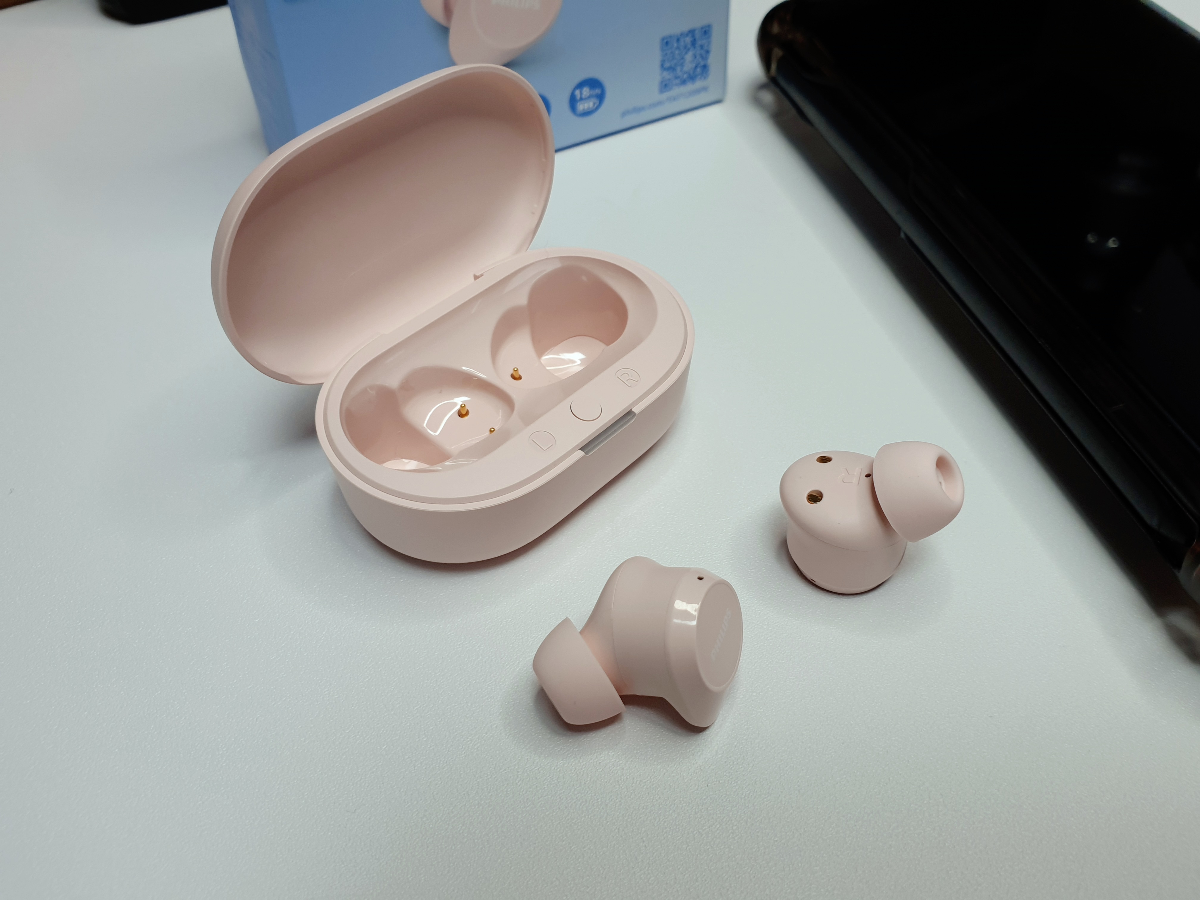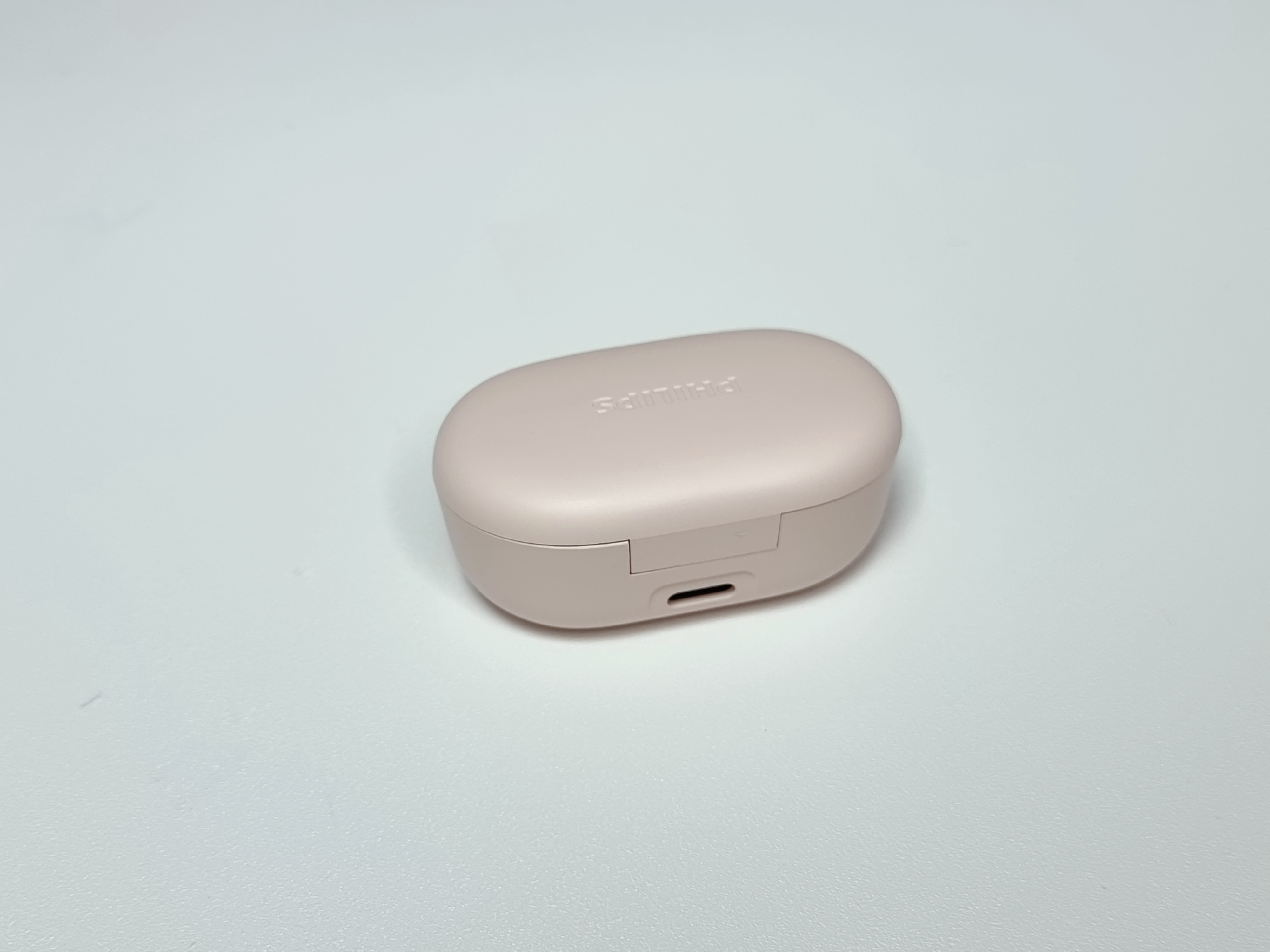 핑크색의 충전케이스가 처음 봤을때부터 아주 마음에 들었습니다. 뚜껑의 필립스 로고도 예쁜 폰트로 각인되어있네요.