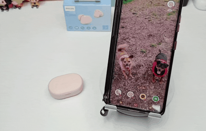 충전 케이스를 열어보면 2개의 이어버즈가 있는데, 사이즈가 작아 귀에 착용했을때도 갑툭튀가 없을 것 같아 좋아 보였습니다. 충전 케이스와 이어버즈는 마그네틱 방식으로 가까이 가져가면 알아서 자리를 찾아 충전되어 편리하고 거꾸로 들어도 떨어지지 않는 자력을 가지고 있습니다.