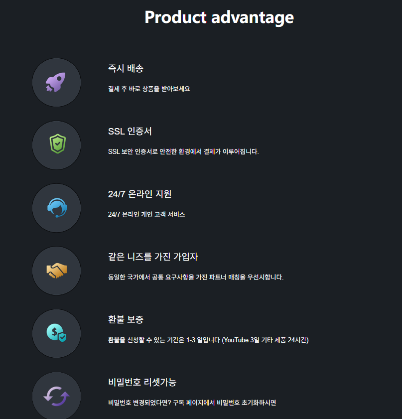 이 사이트의 가장 큰 장점은 SSL 보안이 적용되어 안전하게 이용 가능하다는 점이에요. 개인 정보가 다른 사용자와 공유되지 않아 안심할 수 있고, 문제가 생겨도 고객센터와 24시간 상담 채팅을 통해 바로 도움받을 수 있습니다.