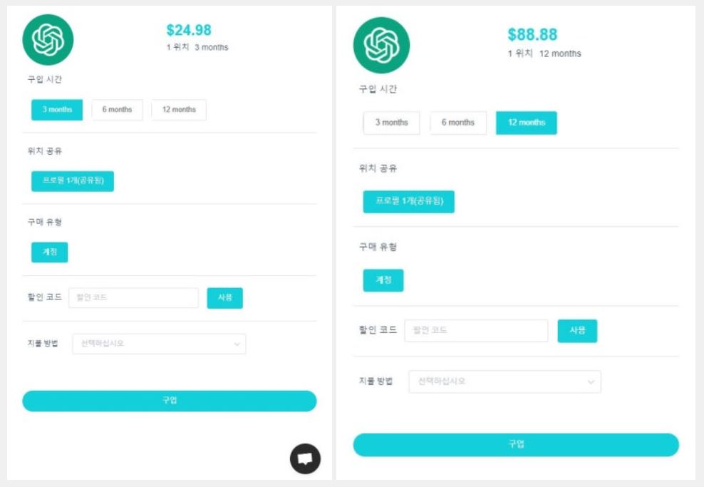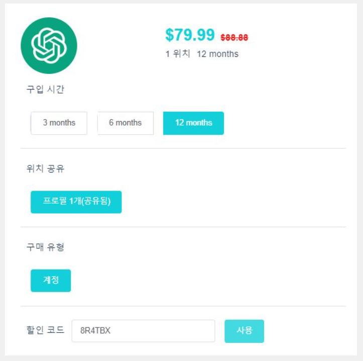 조금 더 구체적으로 설명드리자면, GPT Plus 항목에서 '구입'을 클릭하면 구매 옵션이 뜹니다. 여기서 3개월, 6개월, 12개월 단위로 선택할 수 있고, 가격도 미리 확인할 수 있어요.