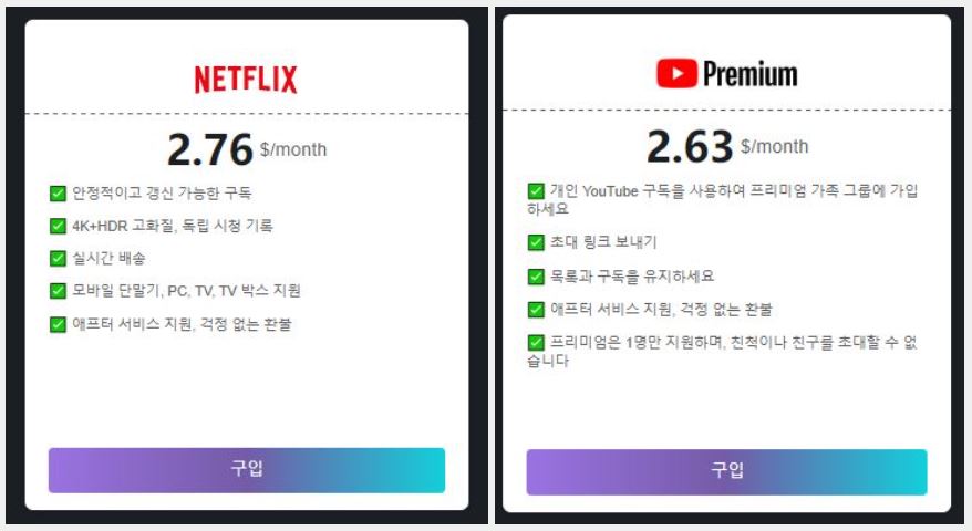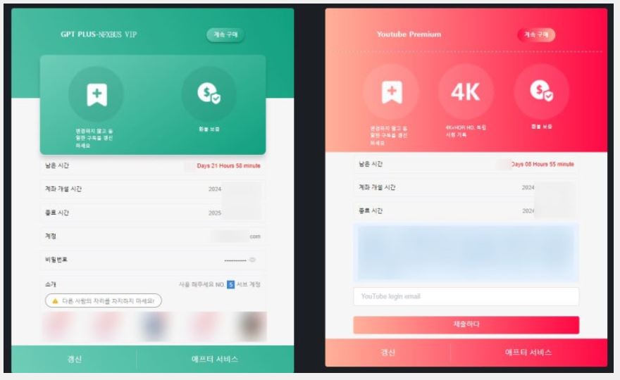 특히 챗GPT 4.0, 넷플릭스, 그리고 유튜브 프리미엄은 상당히 저렴하게 구독할 수 있어서 정말 추천드려요!