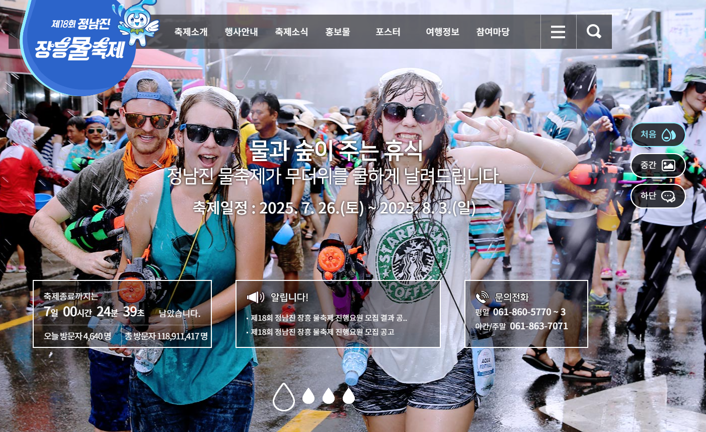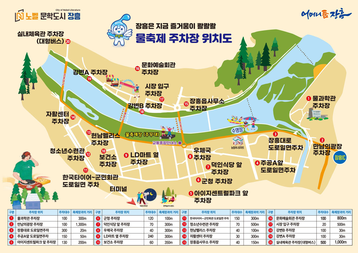 여름마다 열리는 장흥 물축제는 시원한 물놀이와 다양한 공연, 그리고 유명 가수들의 무대로 매년 많은 관람객을 불러 모으는 전남 대표 여름 축제입니다. 2025년에도 장흥 탐진강 일대에서 열리며, 올해는 더욱 풍성한 프로그램과 교통 편의를 제공할 예정입니다. 이 글에서는 축제 일정, 초대가수 라인업, 주차장과 교통편까지 한눈에 확인할 수 있도록 정리했습니다.